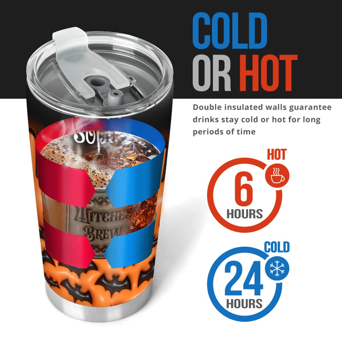 - Constructed with medical-grade stainless steel and double-walled vacuum insulation to keep your beverages hot or cold all day.
