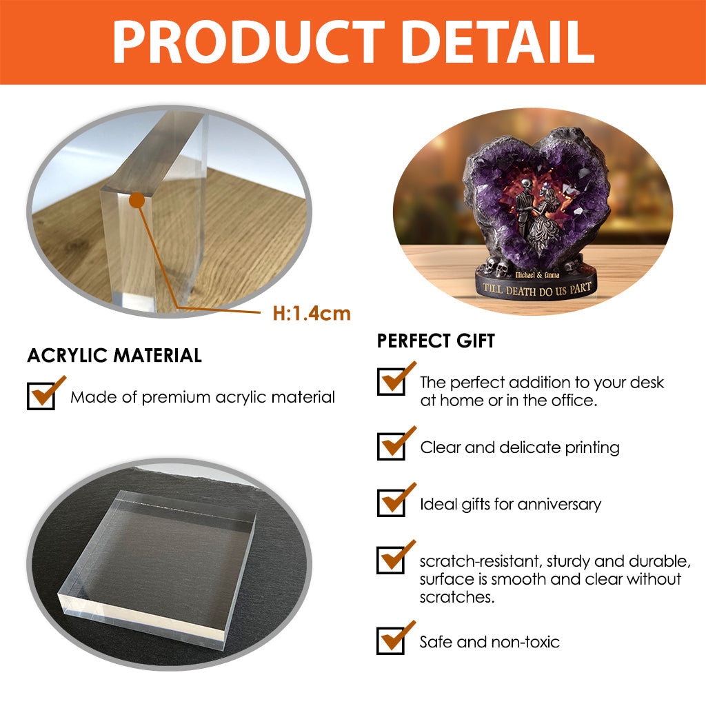 Amethyst Style Skull Couple, Till Death Do Us Part - Personalized Couple Custom Shaped Acrylic Plaque
