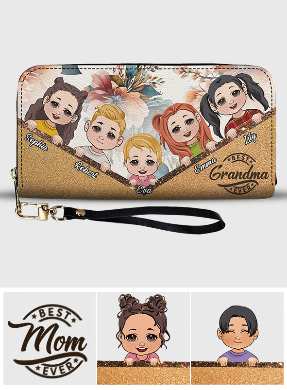 Best Grandma Mom Ever - Personalized Grandma Leather Long Wallet