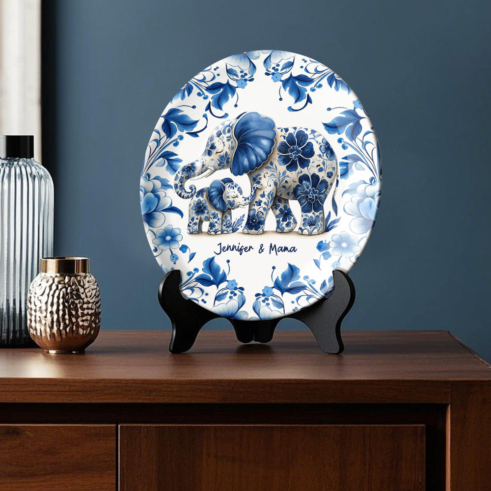 Elephant Mama - Personalized Mother Ceramic Round Plate