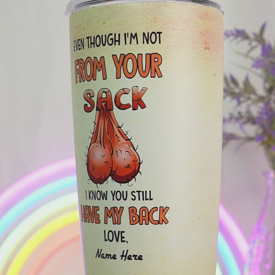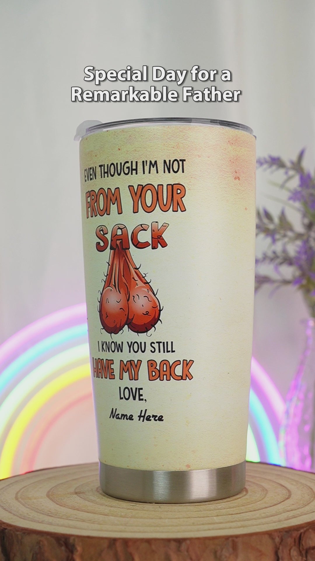 Even Though I'm Not From Your Sack - Personalized Father Tumbler