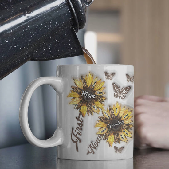 First Mom Now Grandma Sunflower Inflated - Personalized Grandma Mug