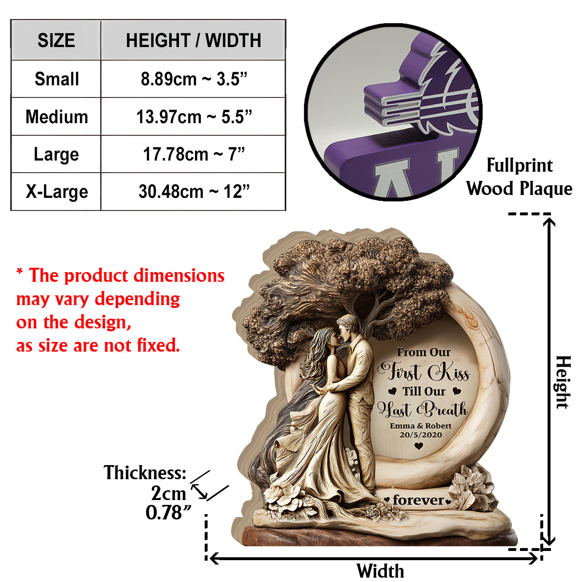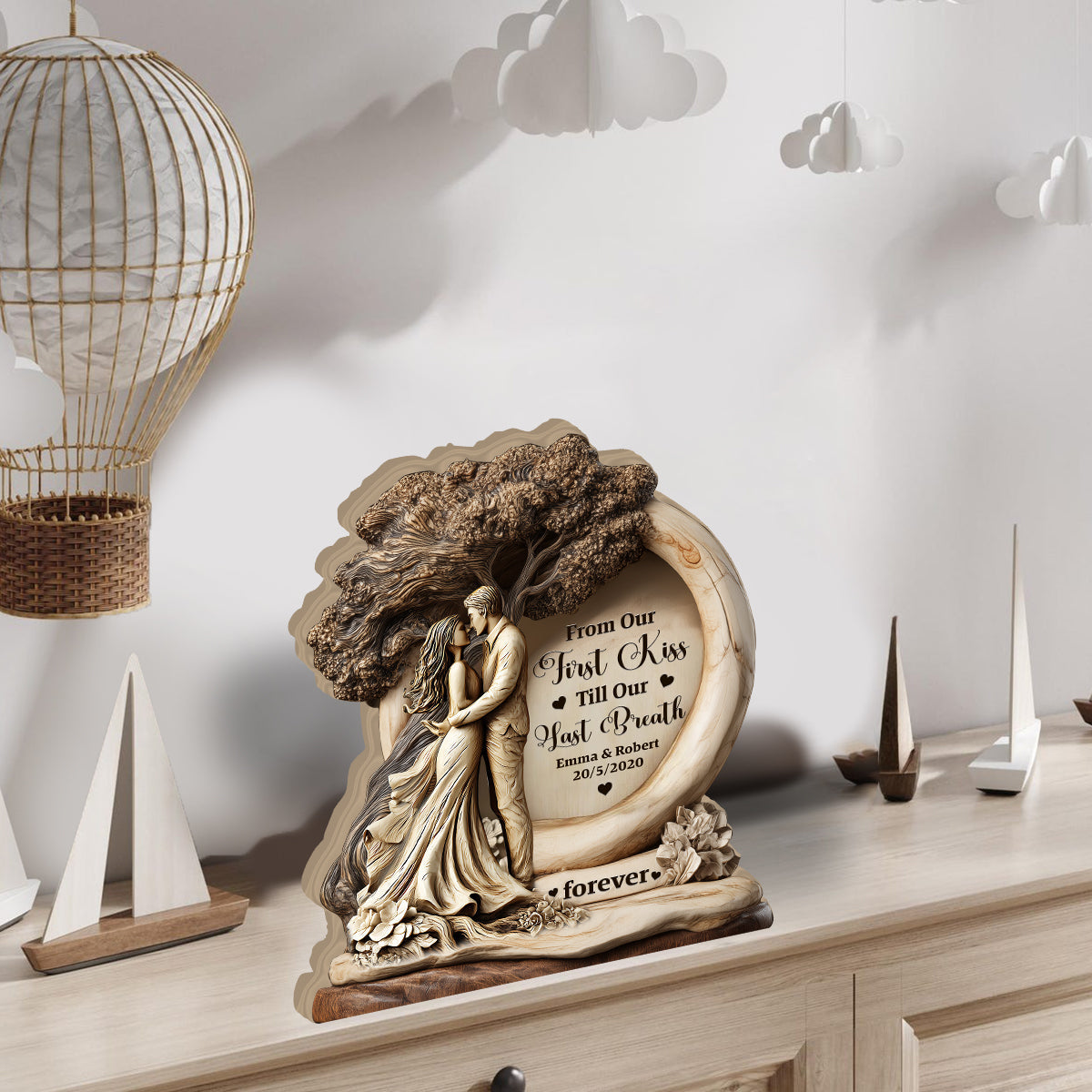 From Our First Kiss Till Our Last Breath - Personalized Couple Custom Shaped Wood Plaque