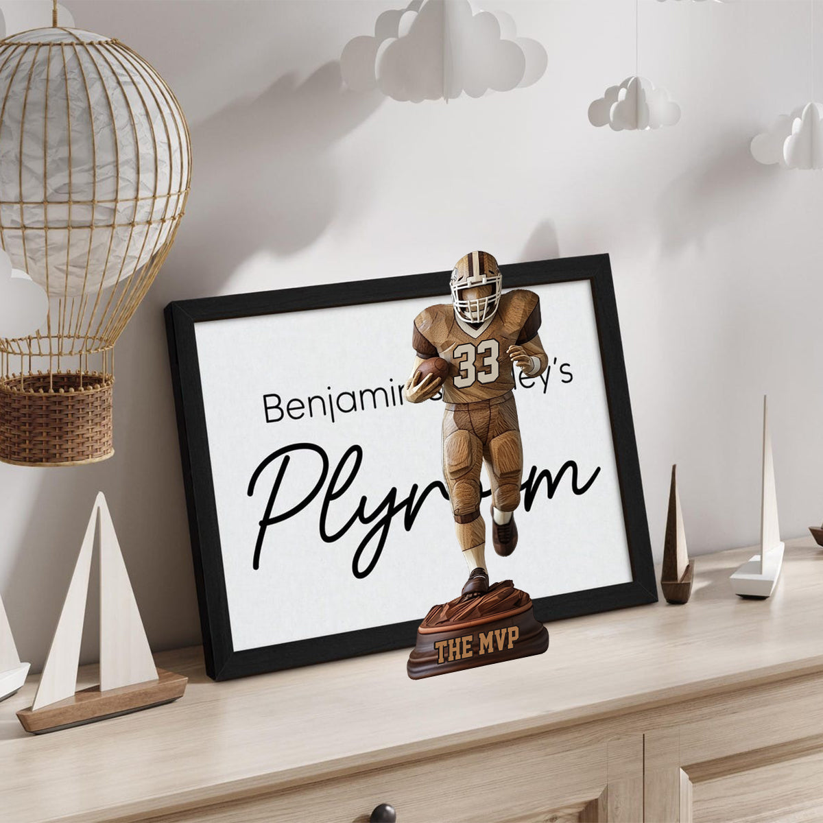 Gift For Football MVP, Gift For Football Son - Personalized Football Custom Shaped Wood Plaque
