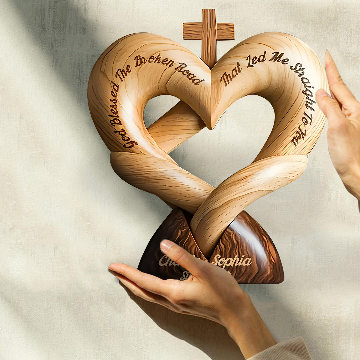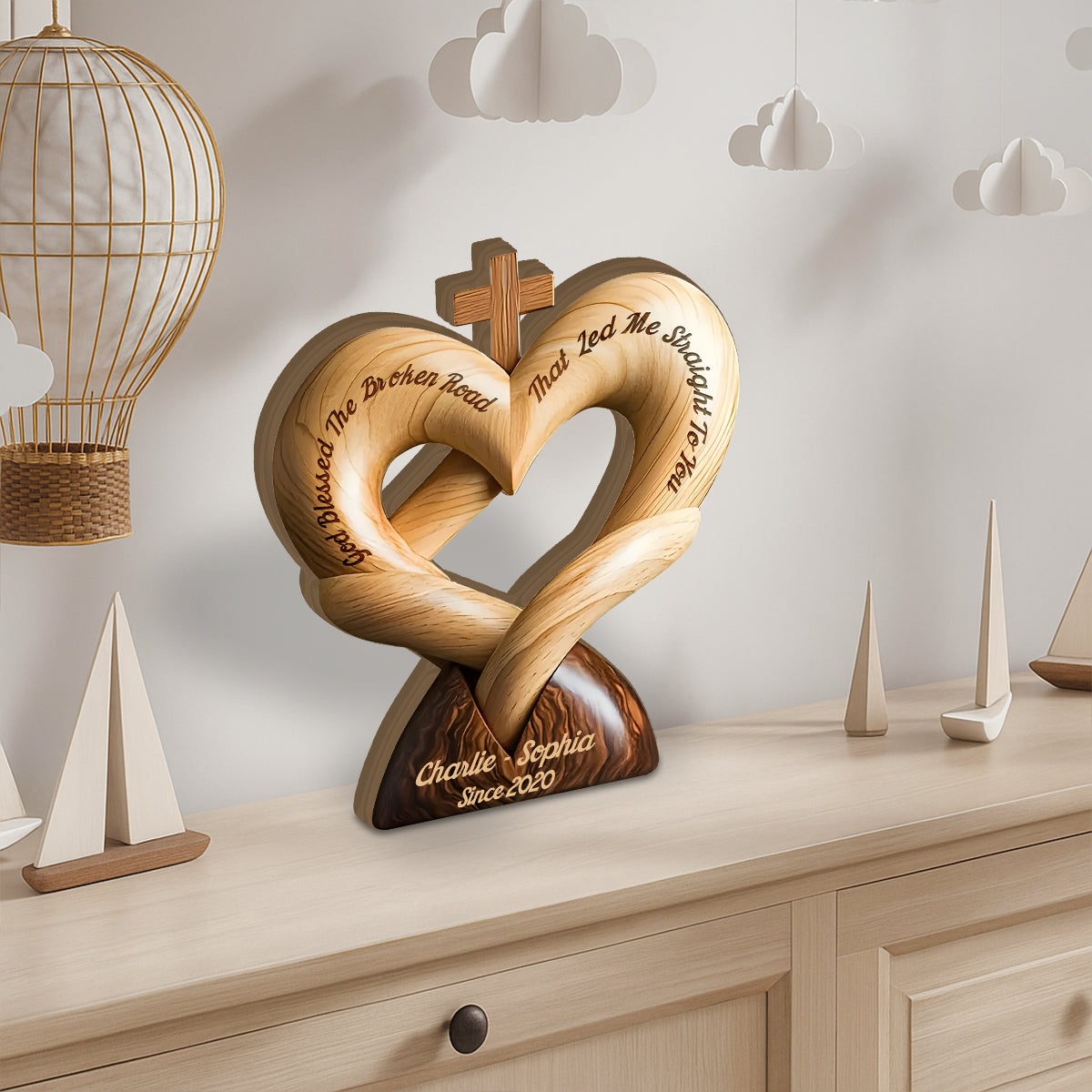 God Bless The Broken Road That Led Me Straight To You - Personalized Couple Custom Shaped Wood Plaque
