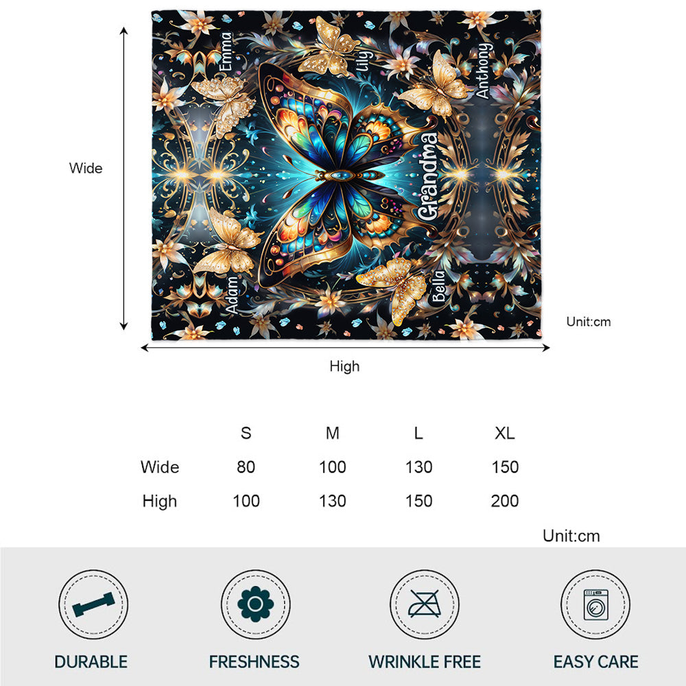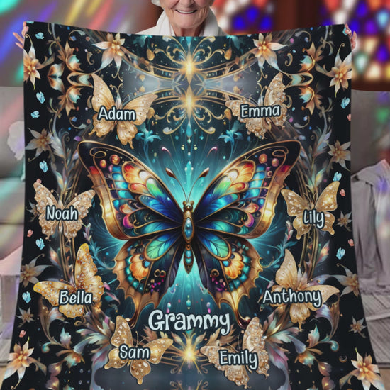 Grandma Life Mom Any Title Stunning Gold Butterfly Version - Personalized Grandma Blanket