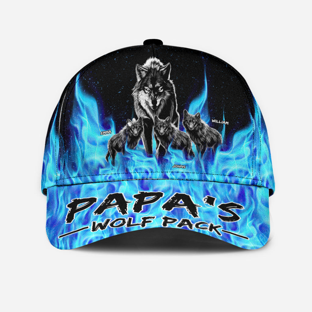 Grandpa's Wolf Pack Blue Flames - Personalized Grandpa Classic Cap