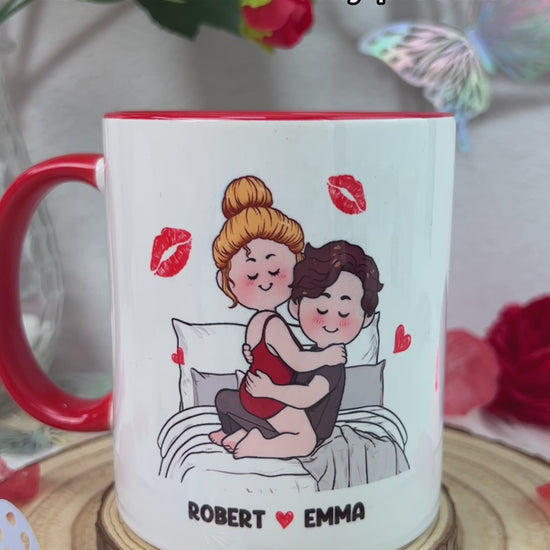 • High quality ceramic mug with two-tone rim, interior, & handle
