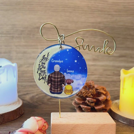 I Love You To The Moon And Back - Personalized Grandpa Keychain (Printed On Both Sides)