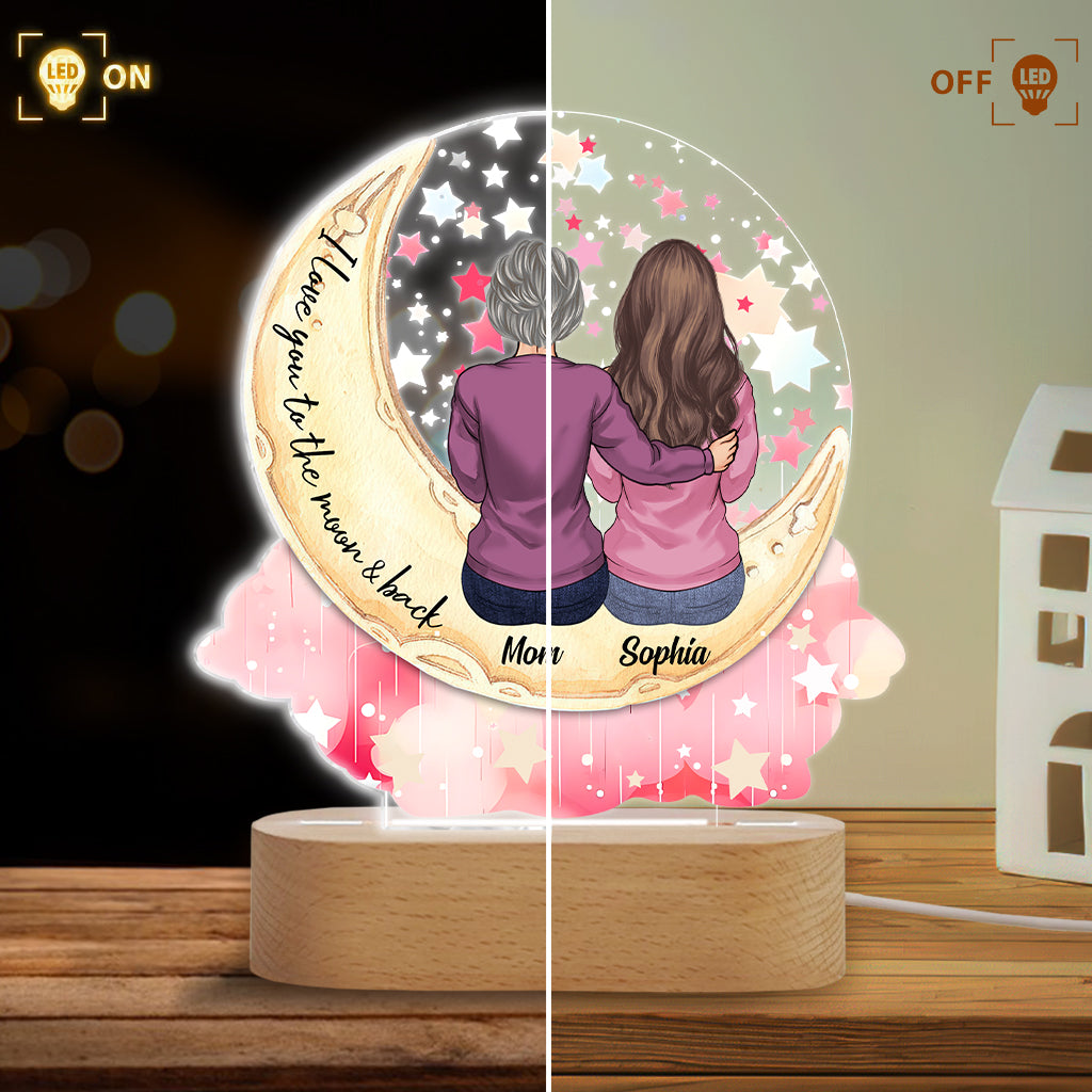 I Love You To The Moon And Back - Personalized Mother Shaped Plaque Light Base
