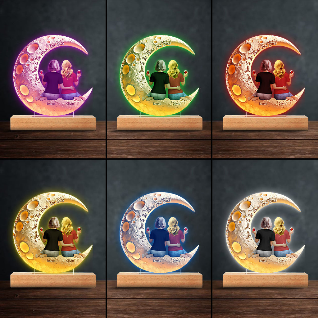 I Love You To The Moon And Back - Personalized Mother Shaped Plaque Light Base