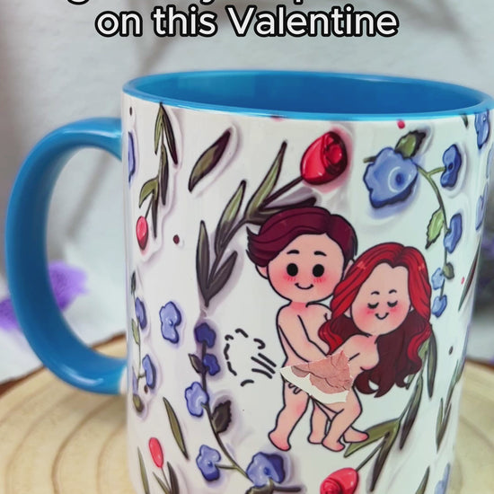 • High quality ceramic mug with two-tone rim, interior, & handle