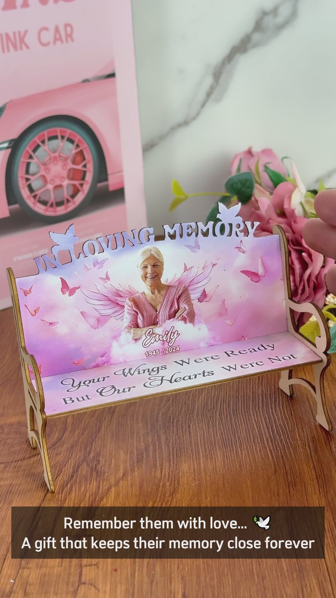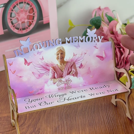 - This bench is a heartfelt and meaningful gift for a family who has lost a loved one. You can customize it with a photo of your loved one and a touching quote. It can be placed on a shelf, desk, fireplace, or any other spot in your home where you want to remember them.