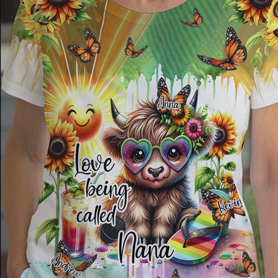 Love Being Called Grandma Highland Cow Summer Vibes - Personalized All Over Shirt