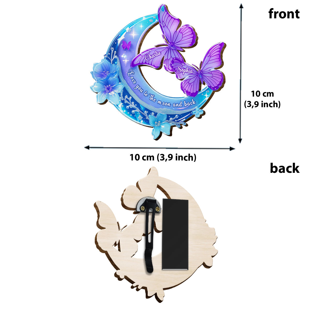 Love you to the moon and back - Personalized Couple Shaped Car Visor Clip