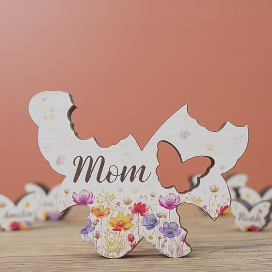 Mom Butterly Wild Flowers - Personalized Mother Shaped Wooden Puzzle