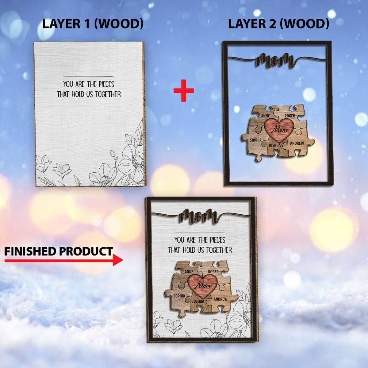 Mom You Are The Piece That Hold Us Together - Personalized Mother 2 Layered Wood Sign / Wood Plaque