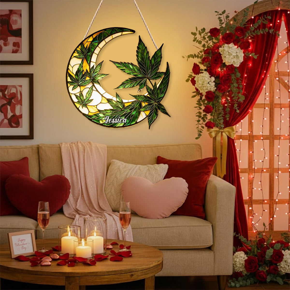 Moon And Leaves - Personalized Weed LED Light Acrylic Sign