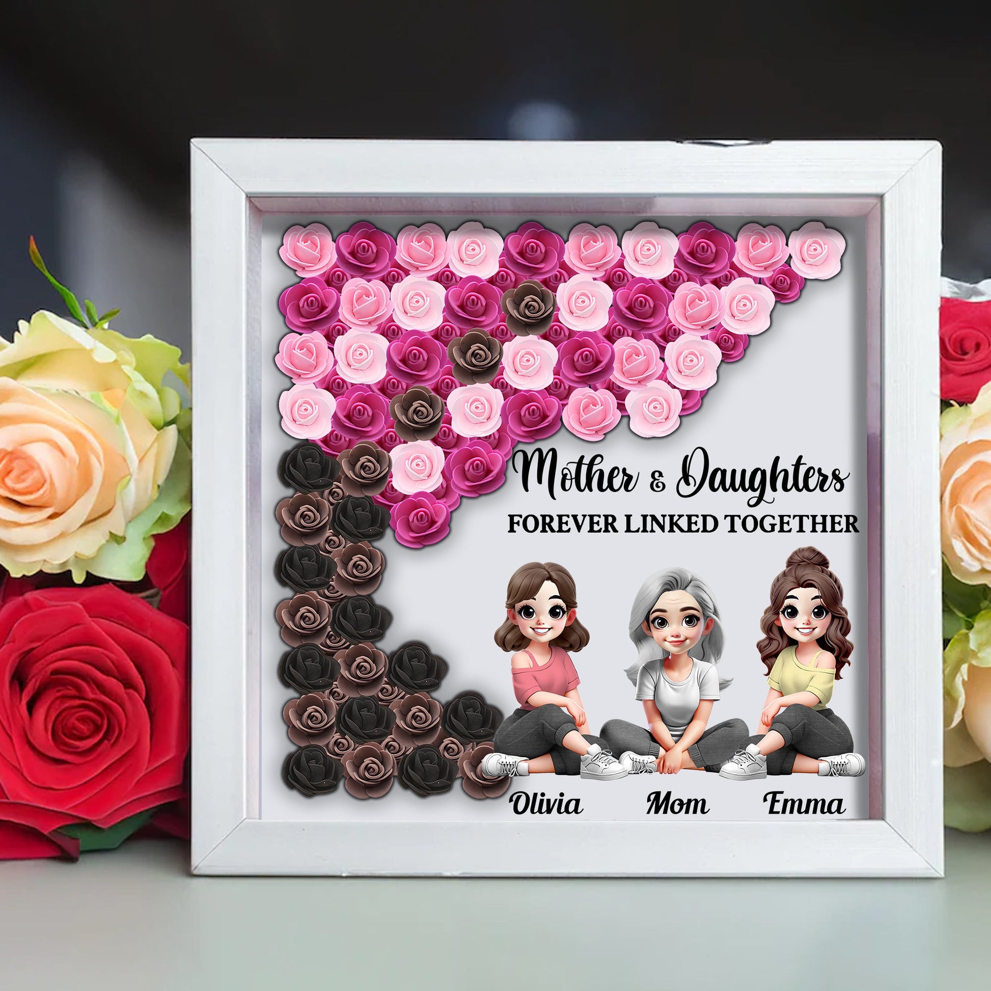 Mother and Daughter Forever Linked Together - Personalized Mother Custom Shaped Flower Shadow Box