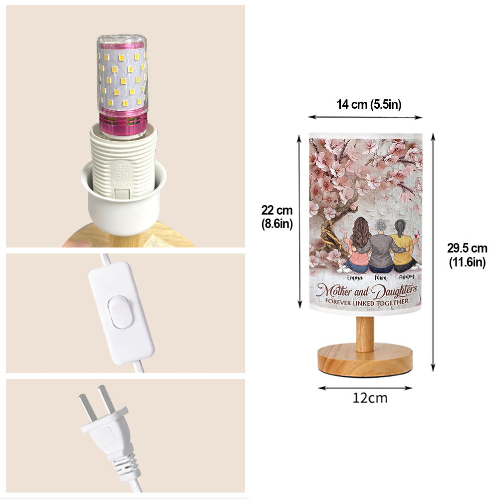Mother And Daughters Forever Linked Together - Personalized Mother Table Lamp with Wood Base
