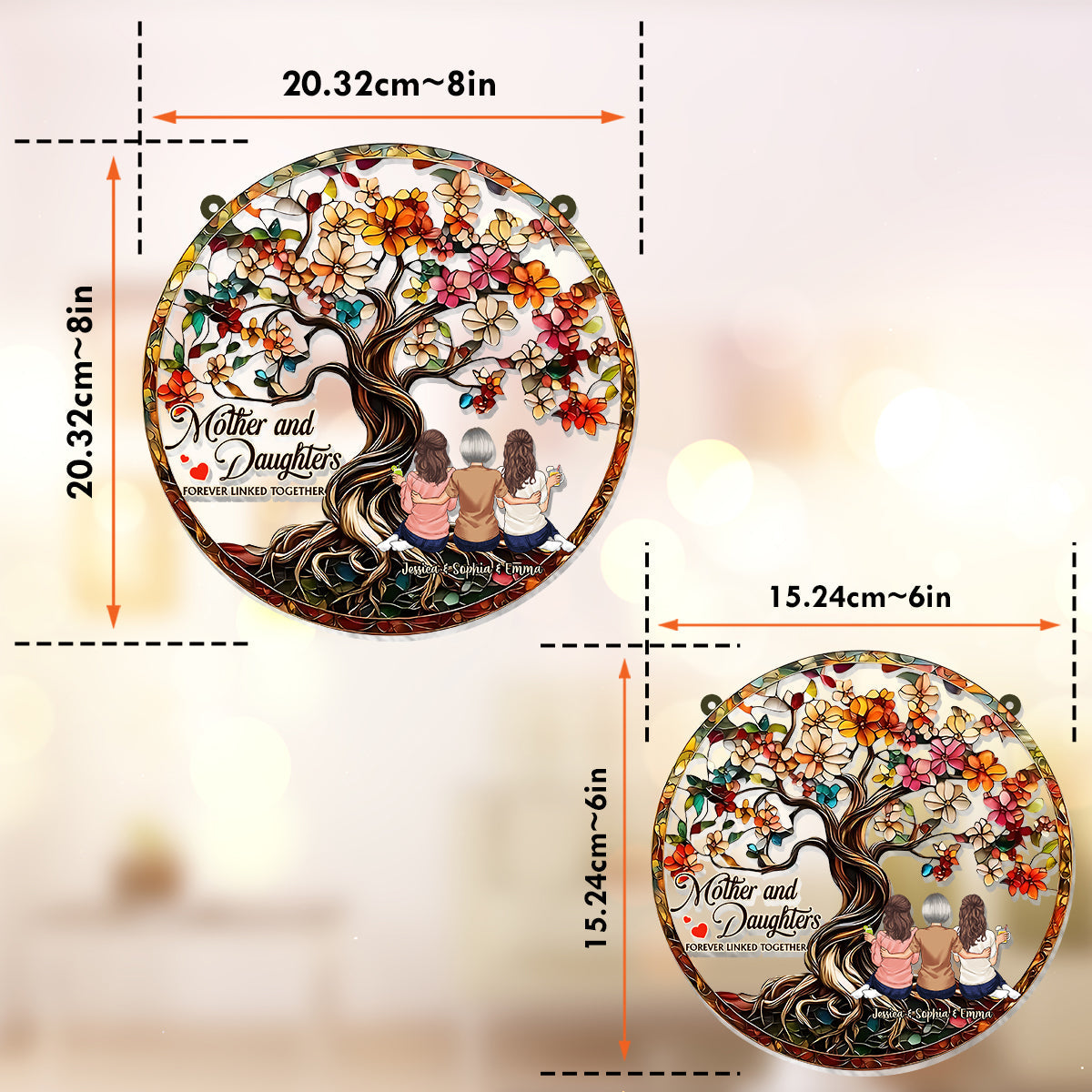Mother And Daughters Forever Linked Together - Personalized Mother Window Hanging Suncatcher Ornament