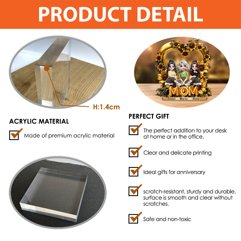 Mother & Daughters Sunflower - Personalized Mother Custom Shaped Acrylic Plaque