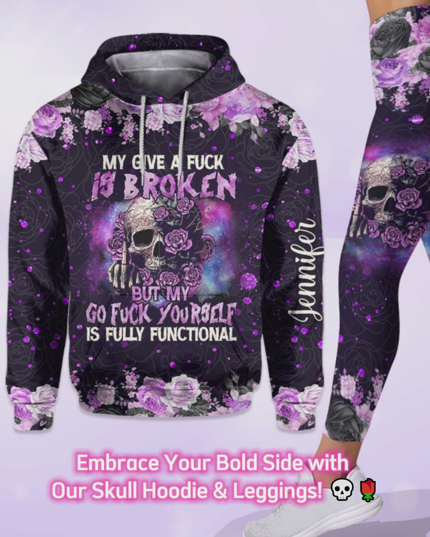 My Give A Fck Is Broken But My Go Fck Yourself Is Fully Functional - Personalized Skull Hoodie and Leggings