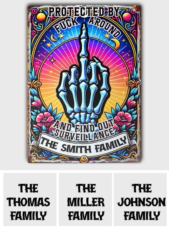 Protected by Fck Around and Find out Surveillance - Personalized Skull Rectangle Metal Sign