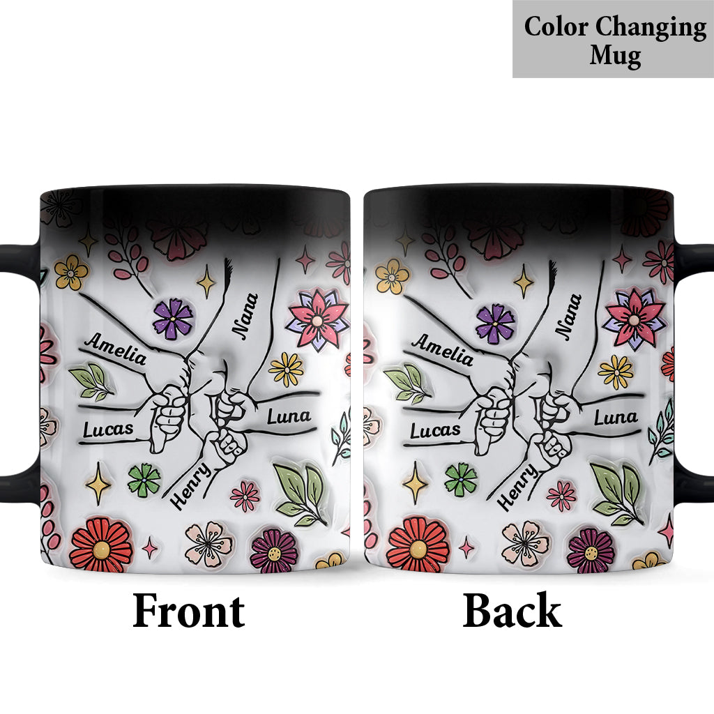 Spring Flower Holding Hands Nana Mom - Personalized Grandma Mug