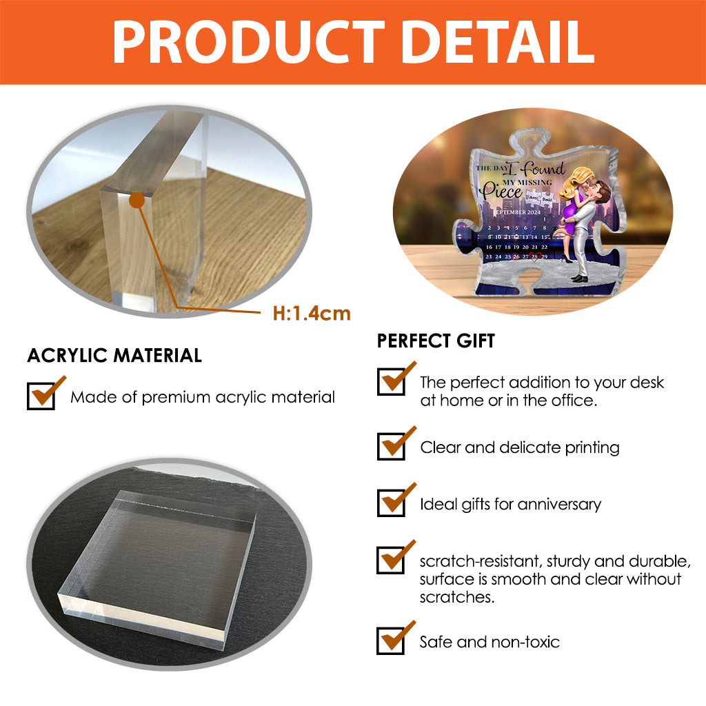 The Day I Found My Missing Piece - Personalized Couple Custom Shaped Acrylic Plaque