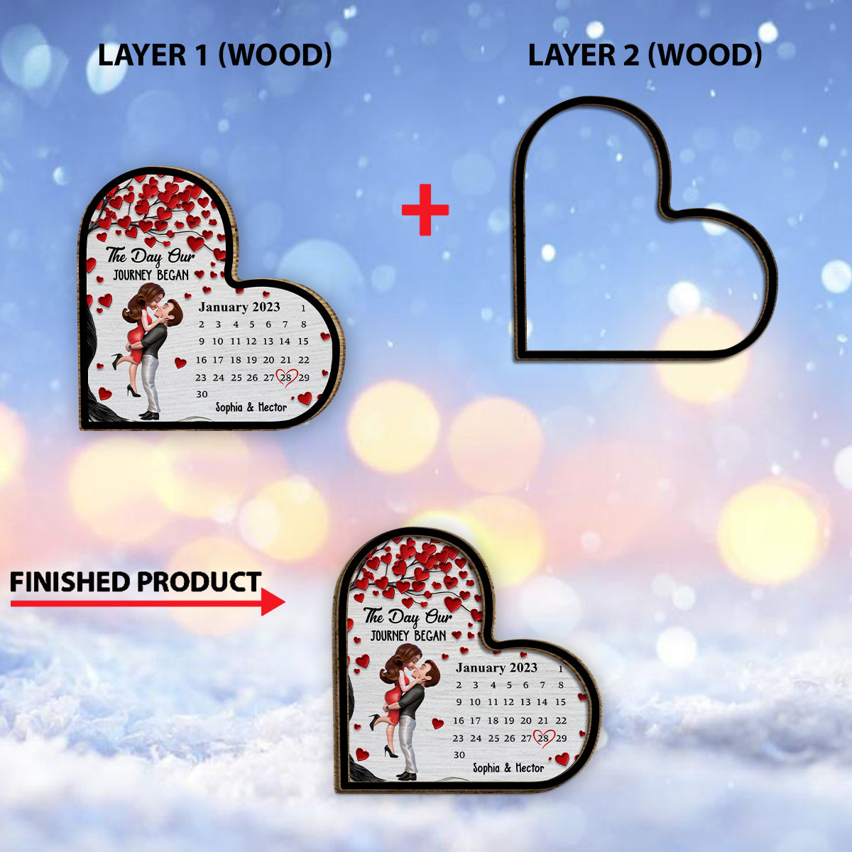The Day Our Story Began - Personalized Couple 2 Layered Wood Sign / Wood Plaque