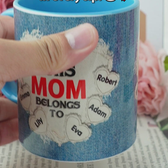 • High quality ceramic mug with two-tone rim, interior, & handle