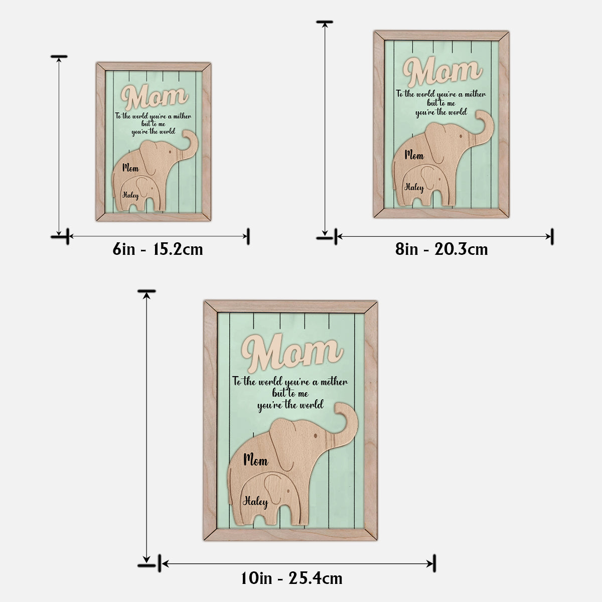 To The World You're A Mother To Me You're The World Elephant - Personalized Mother 2 Layered Wood Sign / Wood Plaque