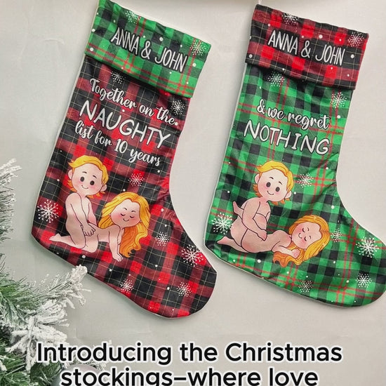 Together On The Naughty List - Personalized Couple Christmas Stockings