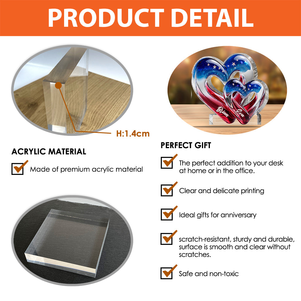 Two Hearts One Love - Personalized Couple Custom Shaped Acrylic Plaque