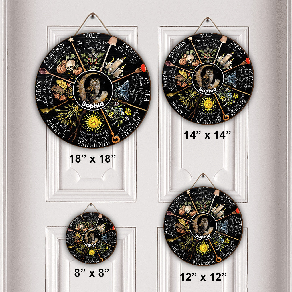 Wheel Of The Year - Personalized Witch Round Wood Sign