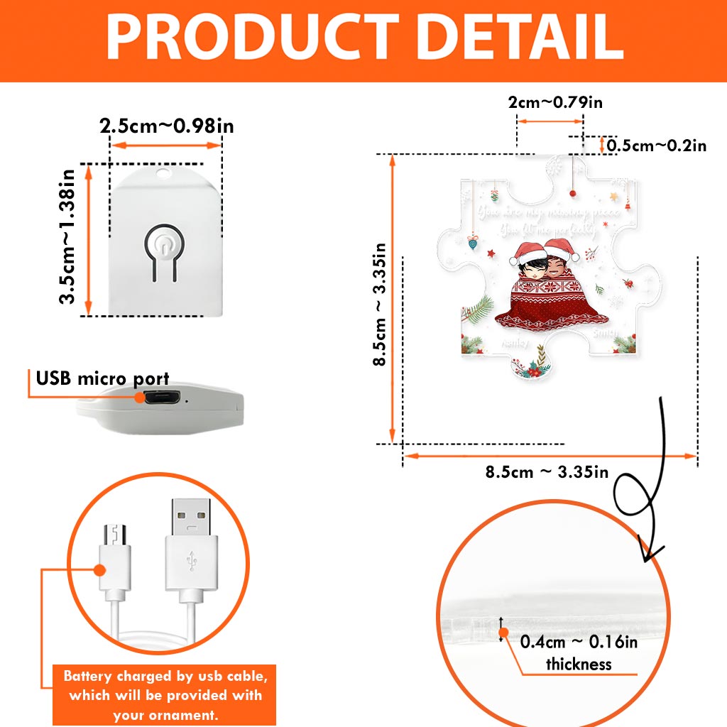You Are My Missing Piece - Personalized Christmas Couple Shaped Led Acrylic Ornament