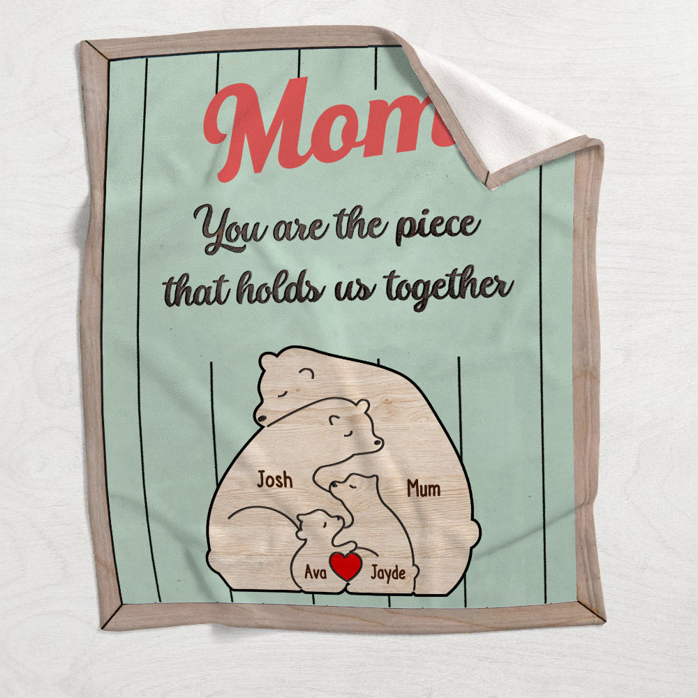 You're The Piece That Holds Us Together Mama Bear - Personalized Mother Blanket